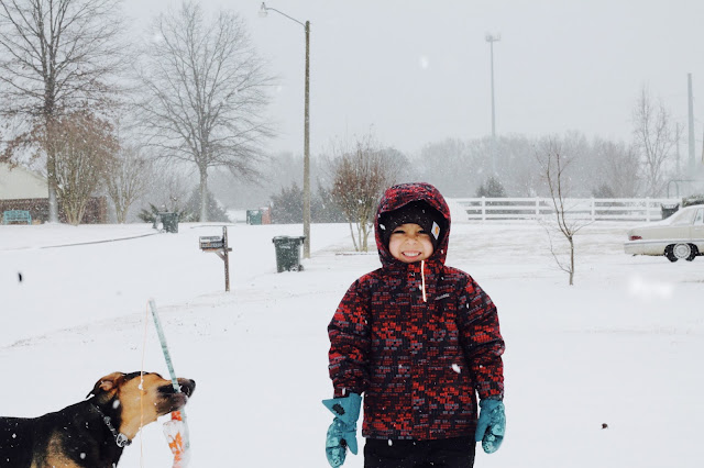 Once we got there, Amos and Rob shot off! I have never seen my dog sprint so much in my life. After they got done with the playground, we all three went for a little adventure at the creek. We have never explored that area before due to all the bushes and branches that are usually blocking it during the warmer months. I left the camera at the house so I didn't get any good shots, but it was so beautiful! Once we finished, dad finally showed up with the sled! The cool thing about our sled is that it comes with a special harness for Amos to pull! We have great hills in our park so we let Amos pull rob down the hills for a couple of runs before heading back inside the house. It was hard to get rob to come in, but we bribed him with some hot chocolate. Hot chocolate always works ;)